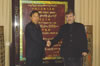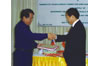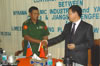 21. O Sr. Wu Jimao, Gerente Geral da Myanmar Ceramic Industrial Company, trocaram presentes com o Sr. Wang Jia'an.